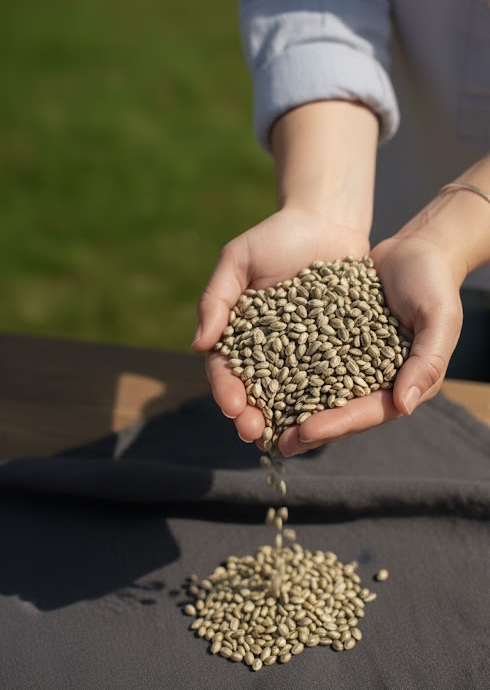 2️⃣ Każde ziarno konopi, zanim trafi do prasy, przechodzi rygorystyczną kontrolę jakości.