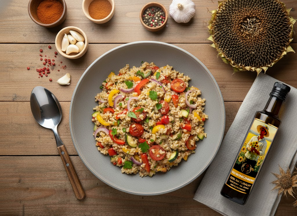 Olej słonecznikowy tłoczony na zimno to kwintesencja smaku lata, która wzbogaci Twoją kuchnię.